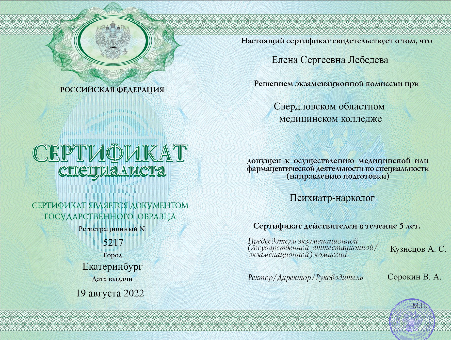 Елена Сергеевна Лебедева врач нарколог клиники доктора Стукаловой в Кременках